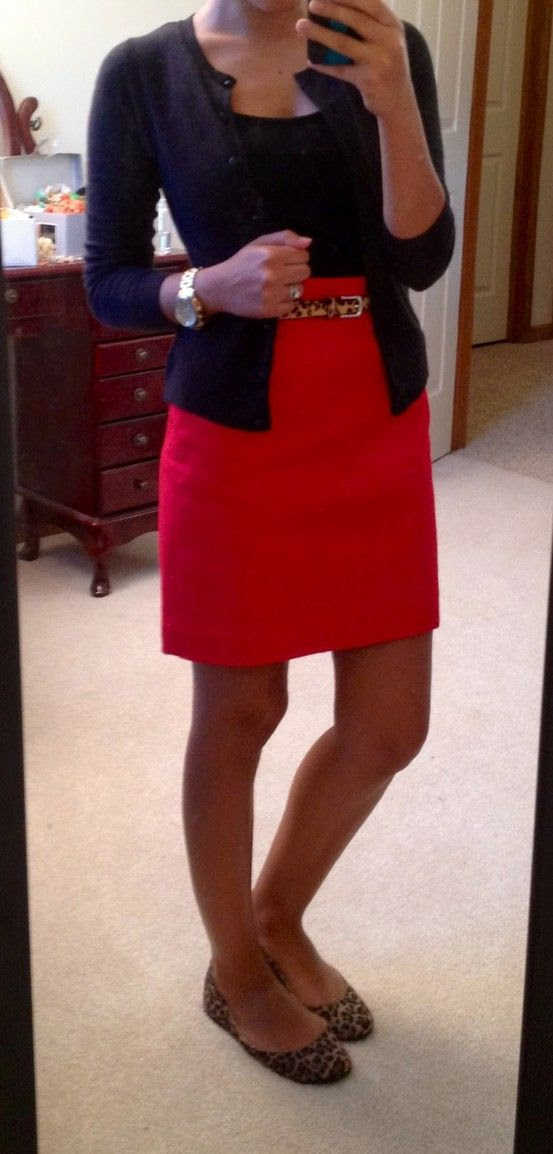 Adorable! Black on top, red skirt, leopard accessories - Click image to find more Women